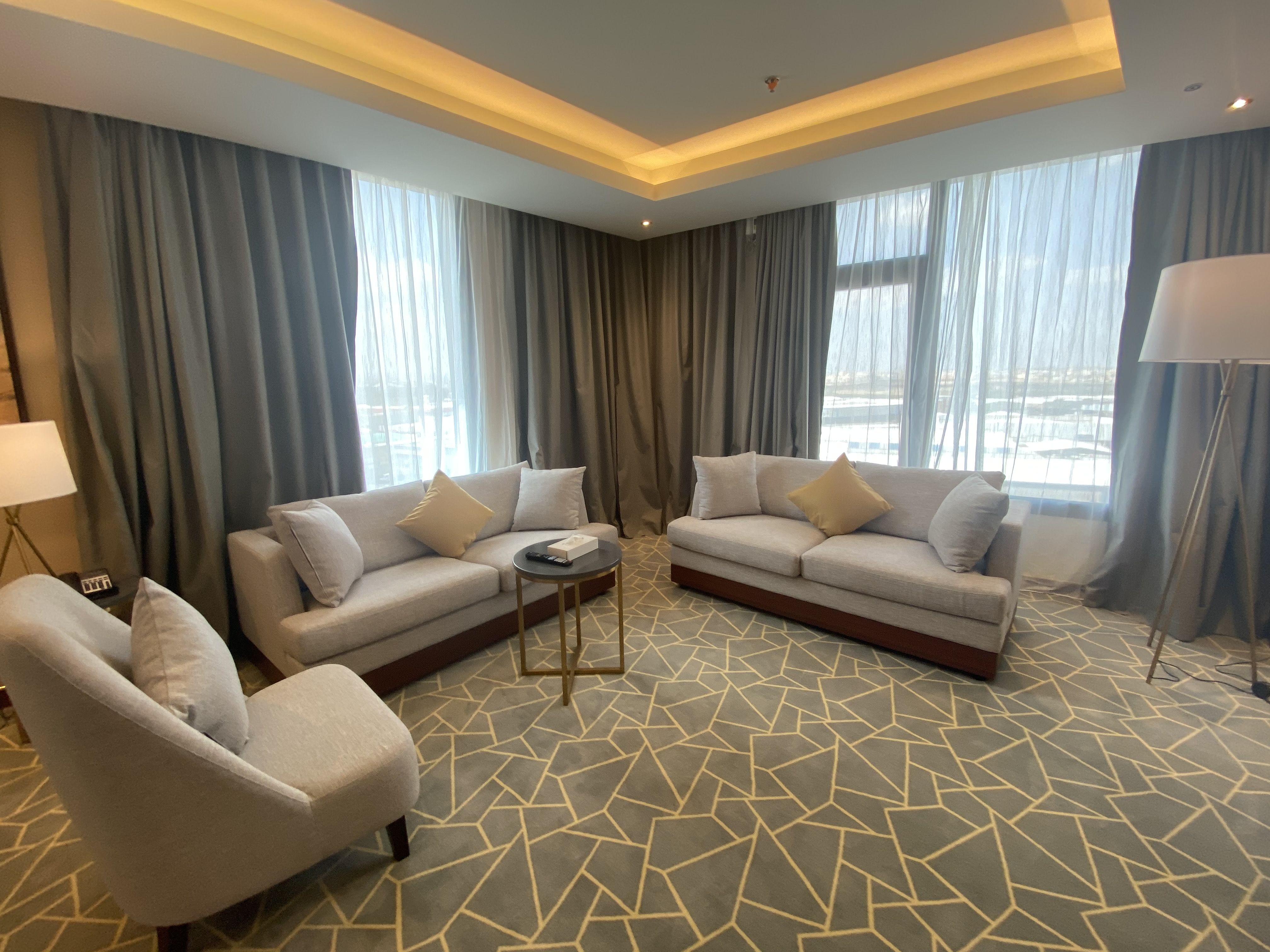 جناح بإطلالة بانورامية على المدينة بمساحة 52 مترًا مربعًا مع غرفة نوم كبيرة وصالة معيشة منفصلة مع أريكة وسرير أريكة ، كل غرفة مجهزة بتلفزيون منفصل